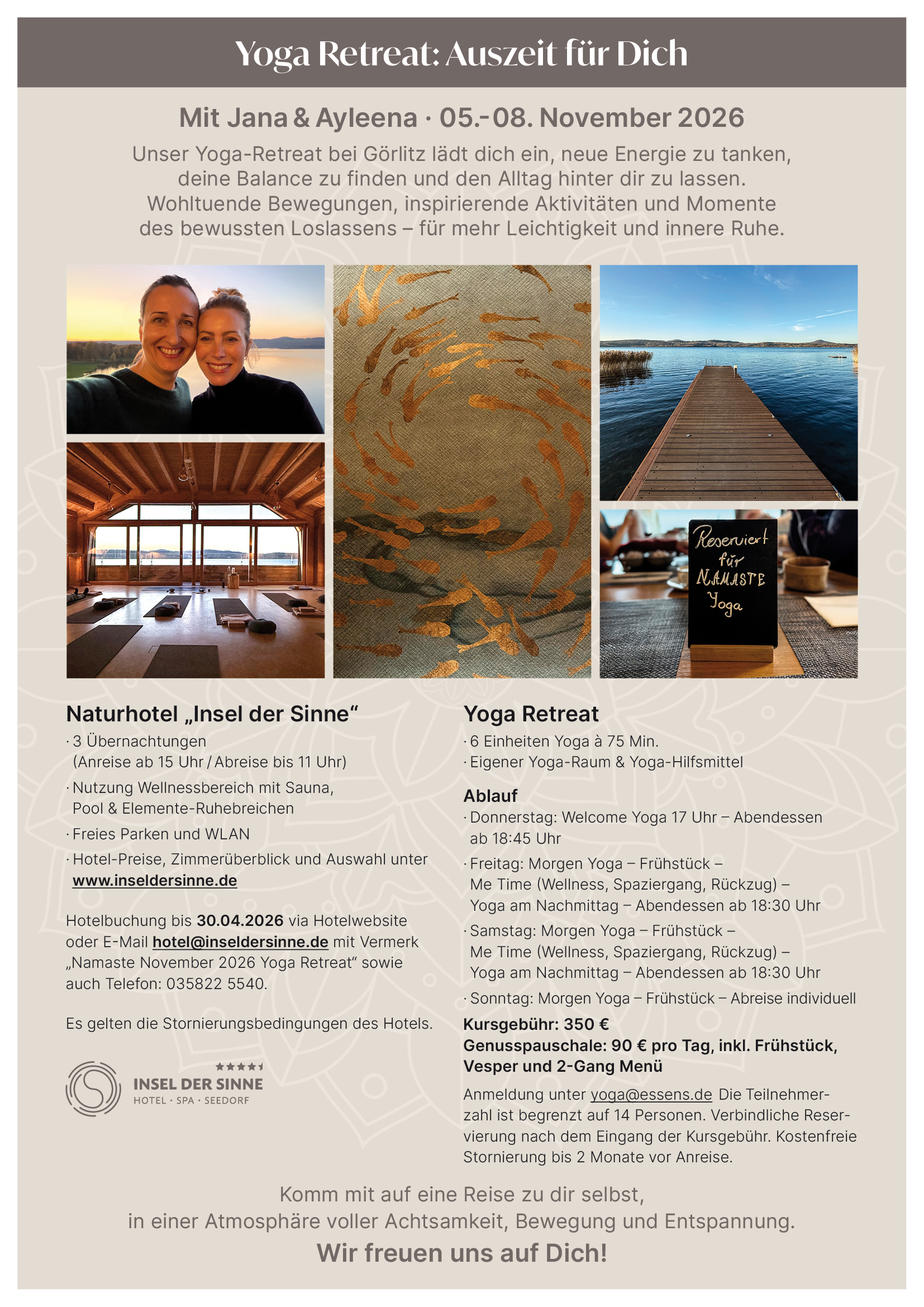 Herzlichen Dank an meine Familie, meine Lehrer und Mentoren, Kolleginnen und Schüler. Danke, dass ihr mit mir diesen Weg geht und für den lebendigen Austausch. Namastè.